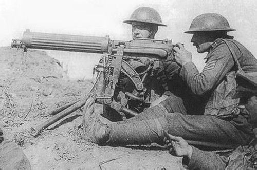 在一戰(zhàn)爆發(fā)時(shí),只有德國(guó)真正認(rèn)識(shí)到機(jī)槍重要性。當(dāng)時(shí),德國(guó)陸軍裝備的馬克沁機(jī)槍超過12500挺。索姆河戰(zhàn)役是機(jī)槍史上最令人驚心動(dòng)魂的戰(zhàn)例。1916年7月,德國(guó)人以平均每百米一挺馬克沁M(jìn)G08機(jī)槍的火力密度,向40公里進(jìn)攻正面上的14個(gè)英國(guó)師瘋狂掃射。一天之內(nèi),6萬名英軍士兵傷亡。到11月18日戰(zhàn)役結(jié)束時(shí),這141天時(shí)間里英法聯(lián)軍陣亡61.5萬人,德軍陣亡65萬人,大多數(shù)人都倒在了馬克沁機(jī)槍的火舌下。歐洲整整一代人喪命于機(jī)關(guān)槍下。
